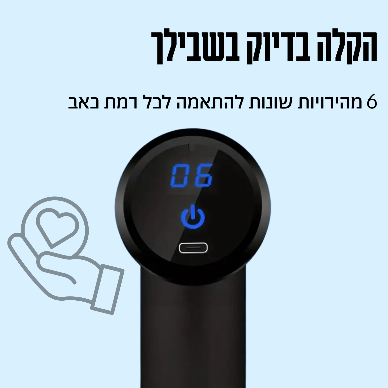 מגיע עם מספר ראשים להקלה מדויקת. השתמשו בראש העגול לקבוצות שרירים גדולות, בראש המחודד לנקודות טריגר, ועוד